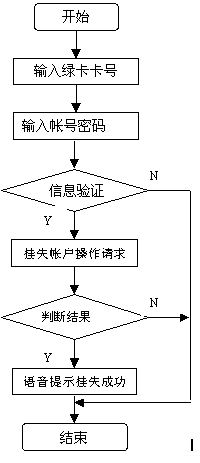 此功能為用戶提供賬號(hào)臨時(shí)掛失業(yè)務(wù),使用戶的損失減到最小。 用戶通過(guò)特定的接入碼進(jìn)入呼叫中心,選擇賬戶掛失后,呼叫中心語(yǔ)音提示用戶輸入帳號(hào)密碼,平臺(tái)將用戶的數(shù)據(jù)送至金融主機(jī)系統(tǒng),然后根據(jù)返回的信息將處理結(jié)果語(yǔ)音提示給用戶。用戶臨時(shí)掛失后,還必須到營(yíng)業(yè)前臺(tái)進(jìn)行正式的掛失操作。流程圖如下圖。