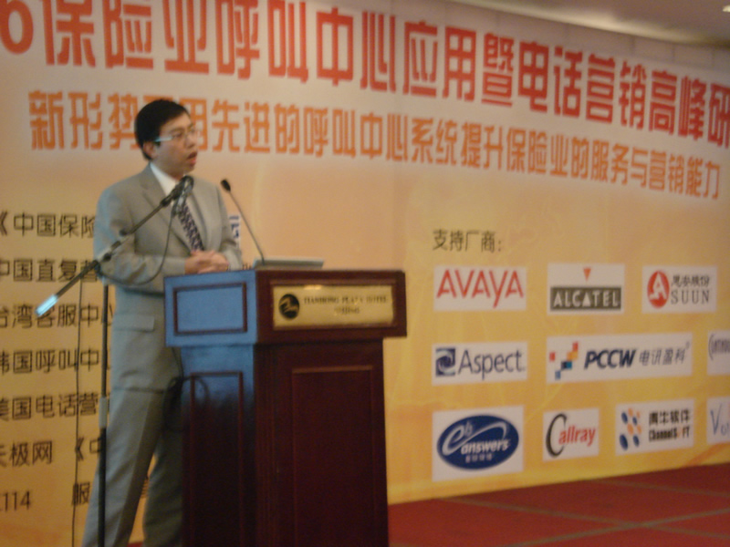 。。2006年10月18日,2006保險業(yè)呼叫中心應用暨電話營銷高峰研討會在北京天鴻科園大酒店隆重召開,以下是大會主題演講的相關(guān)圖片報道: