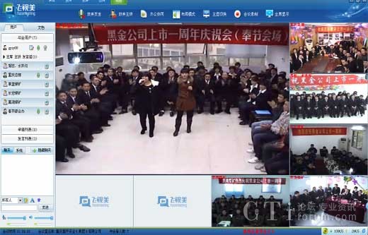 首先,飛視美為總部及5個(gè)辦事處分別安裝了飛視美視頻會(huì)議軟件,將慶典場(chǎng)地劃分為1個(gè)主會(huì)場(chǎng)和5個(gè)分會(huì)場(chǎng),總部與分支機(jī)構(gòu)的員工都在當(dāng)?shù)貐⒓討c典,通過(guò)飛視美進(jìn)行在線演講與總結(jié)、相互問(wèn)候、相互祝福、表演節(jié)目、進(jìn)行互動(dòng)游戲等,這是一種“高科技互動(dòng)”。其次,為了達(dá)到更好的視頻溝通效果,飛視美為黑金實(shí)業(yè)量身定制了一套硬件設(shè)備方案。根據(jù)各會(huì)場(chǎng)的面積、參與人數(shù)等情況,提供了一整套硬件參考:包括攝像設(shè)備、音響設(shè)備、功效設(shè)備等,并派出技術(shù)團(tuán)隊(duì)專(zhuān)門(mén)赴重慶為客戶進(jìn)行設(shè)備搭建和調(diào)試,保障了此次慶典的最佳效果。