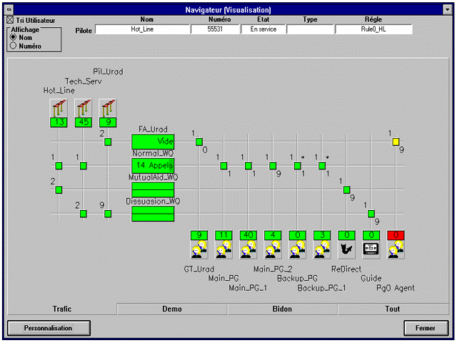 A4400 CCS 呼叫中心監(jiān)管系統(tǒng)是A4400 CCD 的完美配套設備。此監(jiān)管系統(tǒng)組件提供最新實時監(jiān)控功能。經理和主管不僅能很好協(xié)調呼叫處理過程,而且也能觀察服務水準、話務量情況等,并能在現(xiàn)場采取相應的措施。