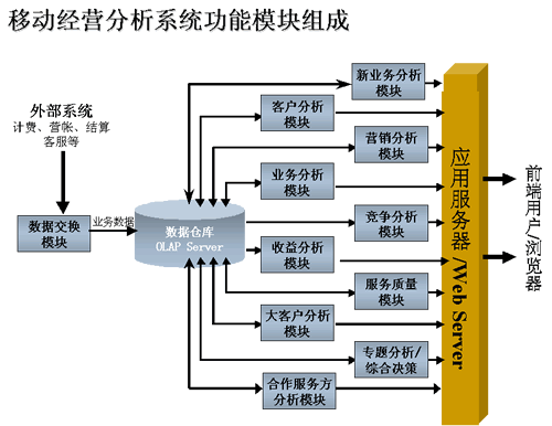 。。在多年業(yè)務(wù)支撐系統(tǒng)(BSS/OSS)的建設(shè)中,電信運營商積累了大量的原始業(yè)務(wù)數(shù)據(jù)。這些數(shù)據(jù)涉及到客戶發(fā)展、市場營銷、業(yè)務(wù)收入、銷售渠道、網(wǎng)絡(luò)優(yōu)化、網(wǎng)絡(luò)規(guī)劃等各種方面,如何才能快速地從中提。z索、查詢)信息,深層次發(fā)掘隱藏在客戶數(shù)據(jù)和業(yè)務(wù)數(shù)據(jù)中的內(nèi)在規(guī)律,及時把握業(yè)務(wù)發(fā)展的趨勢,對業(yè)務(wù)發(fā)展進行前瞻性分析預(yù)測以制定相應(yīng)的市場策略,對市場機會做出及時、靈活的反應(yīng),成為電信運營商在信息時代的市場競爭中立于不敗之地的關(guān)鍵所在。
