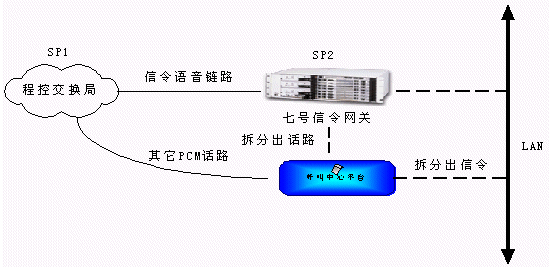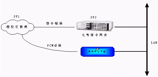 從程控端局送出來的信令和話路通過不同的PCM傳輸,信令鏈路接到七號信令網(wǎng)關轉換,通過消息方式傳遞到呼叫中心平臺,而話路則直接通過PCM線連接到電信平臺上進行話路連接。這種方式結構明晰,有利于系統(tǒng)管理,大大增強了系統(tǒng)容量的擴展能力。