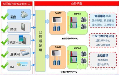 為了達(dá)到異地容災(zāi)的目的,新太科技為美的集團(tuán)在順德與和合肥分別設(shè)立了兩個(gè)呼叫中心,兩個(gè)呼叫中心通過廣域網(wǎng)絡(luò)連接起來。兩個(gè)呼叫中心都可以獨(dú)立運(yùn)作,同時(shí)又可以進(jìn)行統(tǒng)一管理。