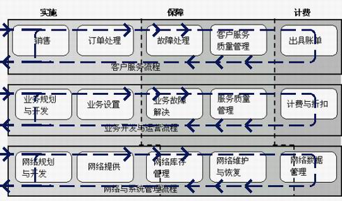 電信運(yùn)營(yíng)乃至整個(gè)電信企業(yè)的經(jīng)營(yíng)管理也越來(lái)越倚重于電信網(wǎng)絡(luò)支持系統(tǒng)。以最短的時(shí)間向用戶提供最新的業(yè)務(wù),對(duì)同一用戶提供豐富的消費(fèi)方式的選擇,對(duì)不同用戶進(jìn)行交叉銷售,乃至對(duì)價(jià)值鏈中的合作伙伴進(jìn)行有效管理,這些都要求業(yè)務(wù)管理與網(wǎng)絡(luò)體系的高度整合。西方的現(xiàn)代電信服務(wù)企業(yè),都紛紛以操作支持系統(tǒng)(OSS)的要求來(lái)規(guī)范自身企業(yè)的運(yùn)營(yíng),努力做到企業(yè)的每個(gè)業(yè)務(wù)操作都能在電信運(yùn)營(yíng)導(dǎo)圖(TOM)中找到相應(yīng)的位置,而每個(gè)步驟和其他步驟的銜接都符合TOM的規(guī)范要求。近年提出的內(nèi)容更加廣泛的擴(kuò)展電信運(yùn)營(yíng)導(dǎo)圖(eTOM)更是規(guī)范了電信業(yè)務(wù)管理的所有重要方面。