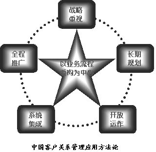 通過(guò)對(duì)金融業(yè)應(yīng)用案例的大量研究,CRCC發(fā)現(xiàn),只有將全流程先進(jìn)管理和一體化客戶關(guān)系管理結(jié)合起來(lái),才能保證金融企業(yè)在競(jìng)爭(zhēng)和獲得關(guān)鍵客戶之后,具備為其提供貼身、增值金融服務(wù)、創(chuàng)新金融產(chǎn)品的能力。這套實(shí)施規(guī)則即“1+5”實(shí)施規(guī)則。