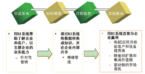 而在當(dāng)前企業(yè)轉(zhuǎn)型的關(guān)鍵階段,我們更要強調(diào),通過BI系統(tǒng)對數(shù)據(jù)的分析挖掘形成企業(yè)內(nèi)部能夠共享的知識,真正運用到企業(yè)運營的各個環(huán)節(jié)中去,支撐精細(xì)化營銷和精確化管理等。