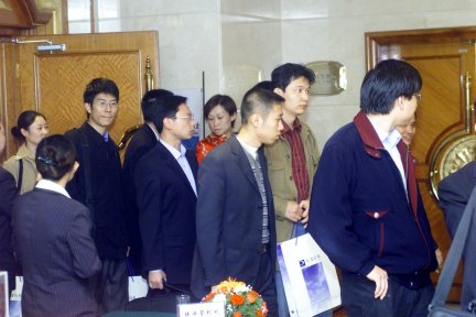 意外之一:預定的簽到時間是下午兩點,根據(jù)一般與會者都會遲到的"原理",組委會并不著急,沒想到工程師們出于守時的習慣,不少人提前了一、二十分鐘就到達了,簽到處頓時人滿為患。