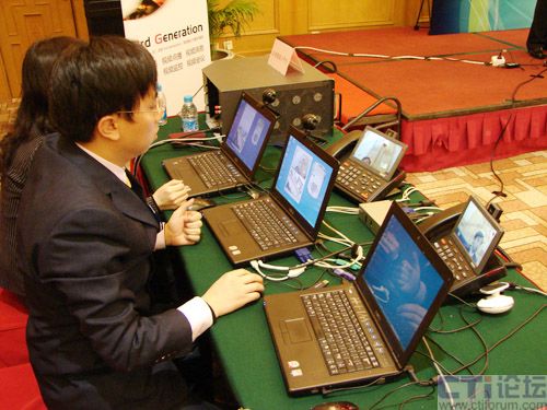 貫穿此次活動(dòng)的一大重頭——3G環(huán)境下視頻業(yè)務(wù)現(xiàn)場(chǎng)演示,被認(rèn)為是產(chǎn)業(yè)融合創(chuàng)新從理論思路到實(shí)踐的跨越。在本次活動(dòng)中,現(xiàn)場(chǎng)展示了折扣搜尋店、移動(dòng)保安和電話QQ面對(duì)面等幾項(xiàng)基于視頻特性的創(chuàng)新應(yīng)用,分別演示了IVVR、視頻監(jiān)控和視頻會(huì)議這3個(gè)功能。演示業(yè)務(wù)顯示出Keygoe多媒體交換機(jī)的視頻特性,以及在3G增值業(yè)務(wù)中的潛在實(shí)力。