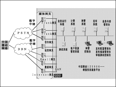 中國移動1259061增值信息服務平臺采用青牛軟件公司提供的網絡中間件產品。這個平臺采用移動通信網絡負責處理全國的呼叫接入,將來自全國的電話呼叫通過長途網從北京局匯入到該增值信息服務平臺上。呼叫分布到多臺服務器上,青牛網絡中間件實現話路的處理、語音的播報、數據的統(tǒng)計等等。