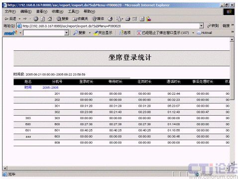 2.項目組外撥分析:包括手動外呼話費明細表、手動外呼話費總計表、項目組手動外呼日報告、項目組自動外呼日報告、項目組座席外撥總計、自動外呼話費明細表、自動外呼話費總計表、座席外呼日報告等。該統(tǒng)計報表分別提供了針對手動和自動的外撥話務(wù)、話費統(tǒng)計,分類明確,統(tǒng)計方便。