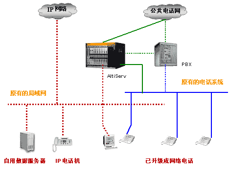 如果您的企業(yè)規(guī)模不是很大,原有的交換機投資不大,我們建議您用奧迪堅的Altiserv來替代原有的交換機。當(dāng)然也可保留原有交換機,將Altiserv作后端設(shè)備。