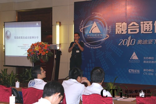 CTI論壇(ctiforum)9月10日消息(記者 楊毅):2010年9月9日奧迪堅在廣州市嘉鴻華美達廣場酒店舉辦的“下一代融合通信平臺華南研討會” 圓滿落下帷幕。本次會議以 “融合通信” 為主題,將最新的由“IPT、IPCC、UC和Mobility”四個部分組成的融合通信技術(shù)完美呈現(xiàn)在嘉賓眼前,吸引了業(yè)界眾多知名廠商和媒體,并得到了奧迪堅在各個行業(yè)的新老客戶的積極響應(yīng)和參與。通過奧迪堅的精彩主題演講、現(xiàn)場的情景秀表演和眾多案例分享等多種形式,與合作伙伴及嘉賓共同探討融合通信技術(shù)該如何發(fā)展、解讀渠道新政策、同時更加深入了解奧迪堅產(chǎn)品,提高合作伙伴在市場上的競爭力。CTI論壇(www.skybaby168.com)獨家承辦此次會議,并進行全程報道。