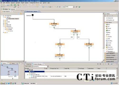 界面使用了標(biāo)準(zhǔn)的呼叫流程設(shè)計(jì)組件創(chuàng)建語(yǔ)音應(yīng)用程序