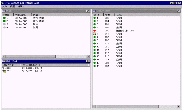 系統配置靈活,可在本地服務器上方便直接的進行系統的用戶添加、刪除和編輯以及改動系統的設置;也可通過分機電話來進行所有的管理;也可通過瀏覽器接口配置來遠端進行系統的管理。系統還可以保持用戶的“身份”,使客戶資料在人員的辦公地點的變動時仍保持不變。服務器屏幕上可顯示中繼線狀態(tài)、分機狀態(tài),非常直觀。