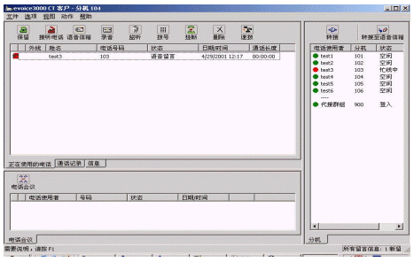 3) 分機用戶軟件:安裝在客戶的計算機中,是可以在屏幕上進行多種語音、數據處理的綜合信息中心,它將語音郵件和普通電子郵件完美結合;其界面操作功能親近直觀。