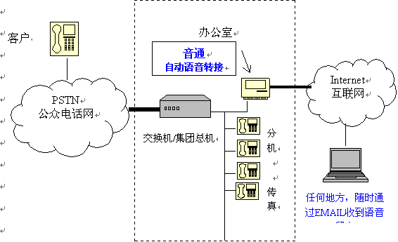 【音通】系統(tǒng)一經(jīng)安裝,生產(chǎn)力及工作效率便可大大提升。接線(xiàn)員不需再無(wú)時(shí)無(wú)刻守候在電話(huà)旁邊處理來(lái)電。即使在辦公時(shí)間過(guò)后,此系統(tǒng)仍能繼續(xù)自動(dòng)運(yùn)作。方便的語(yǔ)音郵箱功能,隨時(shí)隨地收聽(tīng)E-MAIL。