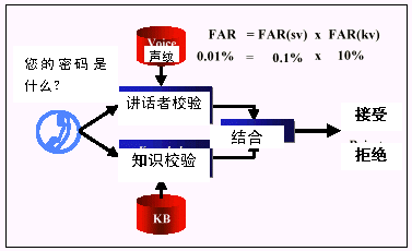 (聲紋鑒別被誤接納的概率) * (知識(shí)校驗(yàn)被誤接納的概率)