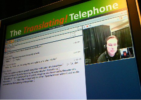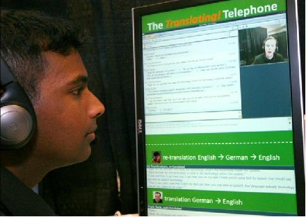 Thambiratnam說(shuō):“當(dāng)多種不同背景的人需要一起交流時(shí),我們的技術(shù)就能提供非常大的便利!盩hambiratnam用同聲傳譯電話展示了這樣一種的情景:Thambiratnam說(shuō)英語(yǔ),他要給他的德國(guó)籍經(jīng)理Frank