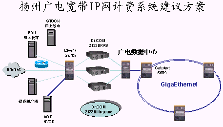 對于以上這些實際問題,北京城市熱點(diǎn)的Dr.com(AAA)計費(fèi)系統(tǒng)給予了比較完滿的解決。下面我們通過揚(yáng)州有線網(wǎng)的具體方案來實際體驗一下。