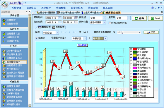 為了解整個(gè)呼叫中心系統(tǒng)的運(yùn)行狀況和工作人員的工作情況,系統(tǒng)由專門的數(shù)據(jù)統(tǒng)計(jì)功能。數(shù)據(jù)統(tǒng)計(jì)功能對(duì)各種信息資料進(jìn)行管理,數(shù)據(jù)統(tǒng)計(jì)功能負(fù)責(zé)收集、統(tǒng)計(jì)系統(tǒng)資源的利用情況、各項(xiàng)業(yè)務(wù)的執(zhí)行情況、系統(tǒng)整體運(yùn)行情況,并可定期刷新數(shù)據(jù)形成報(bào)表。