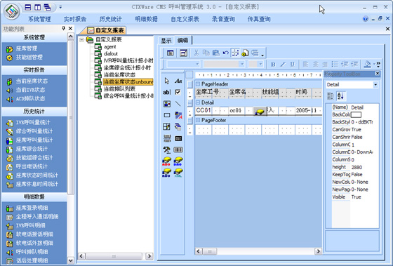 CMS是有效的對(duì)呼叫中心進(jìn)行監(jiān)視和管理的系統(tǒng)。它可以實(shí)時(shí)監(jiān)控整個(gè)呼叫中心的當(dāng)前數(shù)據(jù),按照座席、技能組、中繼線、隊(duì)列、路由進(jìn)行監(jiān)視,查看座席服務(wù)狀態(tài)及接通率各種指標(biāo),通過各項(xiàng)實(shí)時(shí)記錄和歷史記錄向用戶提供多種綜合分析報(bào)告和統(tǒng)計(jì)報(bào)告。其所生成的上百?gòu)垐?bào)表,可以協(xié)助企業(yè)有效管理資源,檢查成本,預(yù)測(cè)改善現(xiàn)有運(yùn)作的潛在需求。并提供圖表顯示,生成Excel文檔進(jìn)行再編輯,或者通過標(biāo)準(zhǔn)的報(bào)表形式進(jìn)行編輯。支持自定義報(bào)表。