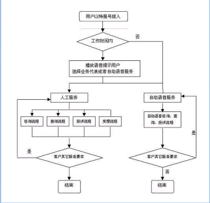客戶打入電話后,當(dāng)系統(tǒng)的自動語音應(yīng)答子系統(tǒng)無法解決客戶問題時(shí),客戶可選擇人工服務(wù),由鐵路客戶服務(wù)代表直接接聽客戶電話,處理并解決客戶問題。此時(shí)客戶同座席話務(wù)人員直接溝通,并同時(shí)記錄下該客戶的聯(lián)系方式,將相關(guān)數(shù)據(jù)添加入系統(tǒng)數(shù)據(jù)庫;也可以在數(shù)據(jù)庫的支持下回答國家和地方的鐵路信息及相關(guān)規(guī)定等的咨詢和疑問?蛻粢部梢赃x擇自動語音服務(wù)方式,根據(jù)系統(tǒng)的語音提示輸入按鍵,選擇類別,將自己的投訴和建議以及自己的聯(lián)系方式信息以留言錄音的方式保存在系統(tǒng)中。系統(tǒng)同時(shí)還支持自動傳真方式,客戶可以通過傳真機(jī)進(jìn)入本系統(tǒng),通過按鍵選擇傳真方式,將自己的意見建議等的文本內(nèi)容傳真給系統(tǒng),系統(tǒng)自動接受并存入數(shù)據(jù)庫。