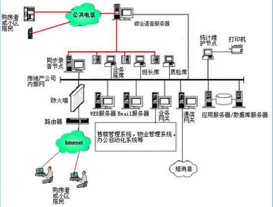 。。用戶利用電話、傳真、WEB、手機(jī)短信息、電子郵件等撥打某一特服號(hào)碼(如95xxx)進(jìn)入房地產(chǎn)多媒體客戶服務(wù)中心系統(tǒng),本系統(tǒng)依托房地產(chǎn)企業(yè)各類業(yè)務(wù)技術(shù)支持系統(tǒng),通過(guò)人工受理或自動(dòng)語(yǔ)音服務(wù)等方式為各類客戶提供購(gòu)房和物業(yè)管理服務(wù);形成了對(duì)外服務(wù)于客戶,對(duì)內(nèi)管理、分析、決策系統(tǒng)相結(jié)合的呼叫中心。