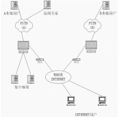 等接口實現(xiàn),每條話路只須8Kbit/s帶寬,并支持網(wǎng)絡優(yōu)化路由及D通道座席預約,大大降低網(wǎng)絡連接費用,提高運行效率。目前主流的方式是采用VoIP技術。物理鏈路利用集團的專用廣域網(wǎng)絡。