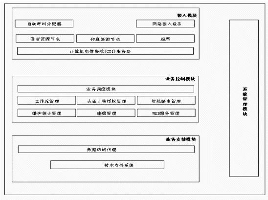 另外從CTI技術和呼叫中心的角度來看,也應當實現(xiàn)適當線路數(shù)的自動語音應答(IVR)功能,呼叫/業(yè)務處理數(shù)據(jù)的統(tǒng)計功能,電話錄音留言功能,對主叫用戶和被叫信息號碼的有效性進行檢查的功能,系統(tǒng)管理維護功能等才能構(gòu)成一個完整的呼叫中心系統(tǒng)。