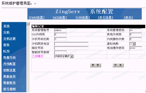 系統(tǒng)維護(hù)管理界面: