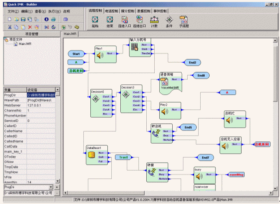 支持語音流程自動生成功能,便于擴(kuò)展業(yè)務(wù):系統(tǒng)提供功能強(qiáng)大的應(yīng)用開發(fā)環(huán)境:可視化語音流程開發(fā)環(huán)境、DLL功能加載、人工座席控制等;提供在線調(diào)試工具、預(yù)編譯功能及錯(cuò)誤檢查功能;提供開放的應(yīng)用層接口,動態(tài)加載新的業(yè)務(wù)模塊
