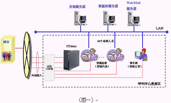 Base 管理、公開的應(yīng)用程序接口等等?紤]到P&S公司實際的業(yè)務(wù)發(fā)展情況,客服中心可能在不久以后進(jìn)行擴(kuò)展,CTstage同時還為P&S提供了包括構(gòu)筑基于IP的分布式呼叫中心、支持Internet接入和未來VoIP技術(shù)融合的接口。