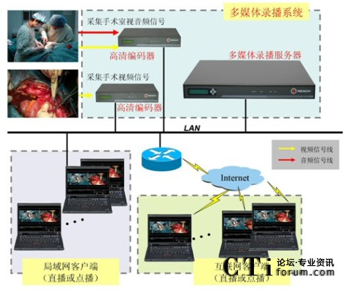 廣州醫(yī)學(xué)院附屬腫瘤醫(yī)院使用銳取高清手術(shù)示教系統(tǒng)用于日常手術(shù)示教。銳取高清手術(shù)示教系統(tǒng)采集手術(shù)室內(nèi)拍攝手術(shù)的高清攝像機(jī)信號(支持1080P、1080I、720P),將采集的信號編碼后錄制并實(shí)時網(wǎng)絡(luò)直播。通過銳取高清手術(shù)示教系統(tǒng),醫(yī)生、專家、學(xué)生不需要到手術(shù)現(xiàn)場,通過網(wǎng)絡(luò)就能觀看到手術(shù)的全程直播以及事后點(diǎn)播。