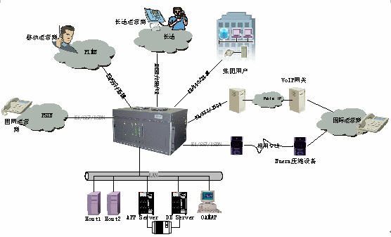 該系統(tǒng)是基于開放式可編程交換平臺,以開放式、模塊化的設計思想,采用業(yè)界最先進的開放式可編程交換技術、信令網(wǎng)關技術、媒體網(wǎng)關技術、IVR技術和網(wǎng)絡技術,專門為電信運營商設計的能無縫融合多種網(wǎng)絡、在同一平臺上靈活提供多種電信增值業(yè)務的運營級綜合業(yè)務平臺系統(tǒng)。它融入了眾多電信業(yè)務轉售商、IP電話運營商、虛擬電信運營商和增值電信服務商的實際運營經(jīng)驗,以強大的功能和實用性幫助新興的中、小型電信運營商快速進入國際、國內(nèi)長途電話話務轉售、預付費電話卡、后付費電話、自動呼叫轉移等市場,提高效率并獲取最大的收益和回報。