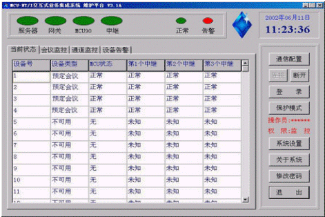 狀態(tài)監(jiān)視:會(huì)議秘書(shū)可以監(jiān)視每個(gè)會(huì)議成員的當(dāng)前狀態(tài)。如:空閑、呼叫遇忙、正在振鈴、取機(jī)應(yīng)答、呼入等待、正在通話等狀態(tài)。各種狀態(tài)以不同的顏色顯示在會(huì)議控制臺(tái)上。