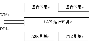 最新的SAPI 3.1提供了基于COM的高級編程接口,應用程序通過這些接口與語音引擎打交道。SAPI將ASR和TTS功能集成在同一個語音引擎中,TTS可以將文本和文件合成為語音,ASR則是將人的聲音信號轉換為可讀的文本或文件。