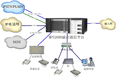 MPS2000融合通信平臺接入手段豐富,能夠提供V5協議與接入網相連,同時平臺能夠通過其遠端模塊接入普通電話,通過AG(接入網關)接入普通電話,通過內部數據網接入IP電話以及軟電話終端(超級終端)。豐富的終端接入充分保證了用戶能夠在各種情況下的語音通信需求。目前,該套設備已經在浙江移動投入使用,不久就可提供給全國各地的運營商及大中企事業(yè)單位。