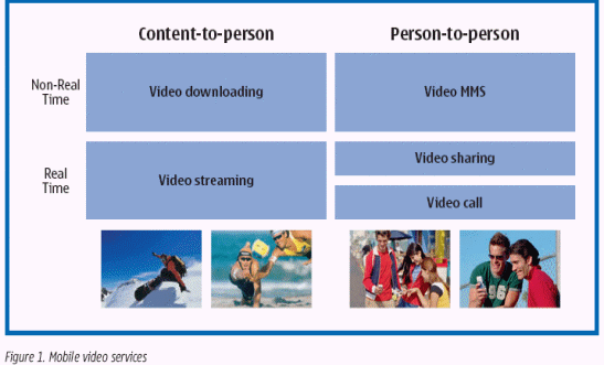 許多移動(dòng)運(yùn)營(yíng)商已經(jīng)引領(lǐng)并推出移動(dòng)視頻服務(wù),它正因視頻流和實(shí)時(shí)P-to-P高質(zhì)量通話的增加,逐步發(fā)展出更多的商機(jī)。ARC組織估計(jì),在2004年里,全世界的移動(dòng)視頻用戶數(shù)量將增至2400萬(wàn),而到2008年,將是10倍的增長(zhǎng),達(dá)到2億4700萬(wàn)。(摘自:ARC組織發(fā)表的《2003年-2008年,世界移動(dòng)視頻市場(chǎng)分析和戰(zhàn)略前景》)今天,大約有60個(gè)運(yùn)營(yíng)商是依據(jù)發(fā)布新聞和其它公共信息資源來推廣移動(dòng)視頻服務(wù),圖1展示了移動(dòng)視頻服務(wù)的概念框架。