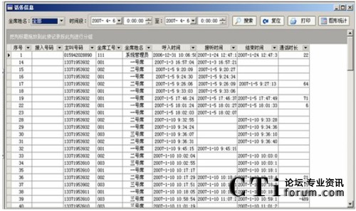 系統(tǒng)提供統(tǒng)計(jì)報(bào)表生成工具,實(shí)現(xiàn)對(duì)系統(tǒng)訪問次數(shù)的統(tǒng)計(jì)與分析,并以圖示直觀地反映出用戶關(guān)注的熱點(diǎn)?砂粗鹘刑(hào)碼、局向統(tǒng)計(jì)時(shí)長,并自動(dòng)生成效果圖,直觀表現(xiàn)業(yè)務(wù)發(fā)展。還可根據(jù)主叫統(tǒng)計(jì)時(shí)長,當(dāng)天分析,本周分析,本月分析,提供時(shí)長走勢圖(可以以小時(shí)為單位分析時(shí)長的走勢,也可以以天為單位分析時(shí)長的走勢)
