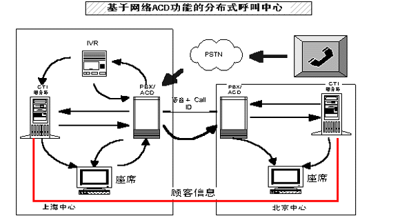 采用智能呼叫分配(ACD),由多種條件決定路由的選擇,如業(yè)務(wù)員的忙閑統(tǒng)計、業(yè)務(wù)員的服務(wù)能力、每天不同時段呼叫統(tǒng)計、主叫用戶的所在區(qū)域以及主叫用戶的號碼等。企業(yè)呼叫中心甚至可突破語言界限,跨越不同電話系統(tǒng)網(wǎng)絡(luò)分布到全球轉(zhuǎn)發(fā)話音及數(shù)據(jù)。