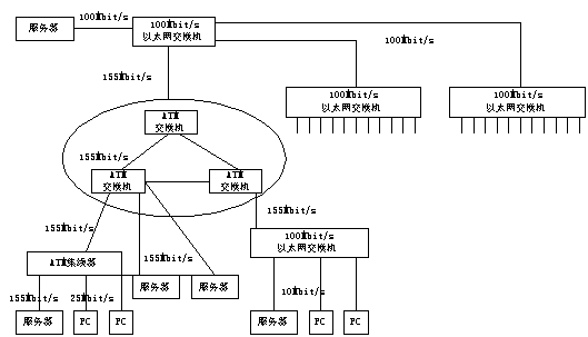 ATM 局域網(wǎng)是指以ATM結(jié)構(gòu)為基本框架的局域網(wǎng)絡(luò),它以ATM局域網(wǎng)交換機(jī)為交換點(diǎn),通過(guò)各種ATM接入設(shè)備,如ATM集線(xiàn)器、ATM網(wǎng)卡等將用戶(hù)接入局域網(wǎng)。ATM網(wǎng)絡(luò)具有帶寬大,速度高的優(yōu)點(diǎn),并能提供業(yè)務(wù)質(zhì)量QOS服務(wù),其性能大大優(yōu)于傳統(tǒng)共享式局域網(wǎng),但同時(shí)也面臨著高速以太網(wǎng)的挑戰(zhàn)。