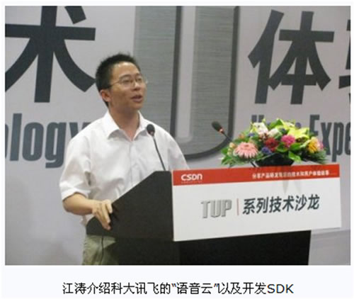 7月16日下午,CSDN TUP第十二期“移動開發(fā)技術沙龍:次世代人機交互接口及應用開發(fā)”在中國科學院計算技術研究所一層報告廳舉行。本次活動邀請了微軟亞洲工程院軟件工程師馬寧、神念科技大中華區(qū)總裁張彤和科大訊飛副總裁江濤,分別在Kinect應用開發(fā)、腦際接口技術的應用和語音輸入交互三個方面進行了演講和互動,F(xiàn)場爆滿,氣氛熱烈。