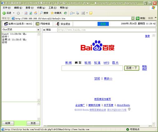 Chart交談:客戶可以選擇通過WEB頁面與座席通過文字的形式進(jìn)行交談,無需語音通信 ,客戶進(jìn)入特定的CHAT網(wǎng)頁后,可以選擇一個(gè)座席或一組座席進(jìn)行CHAT交談。如圖12和13所示: