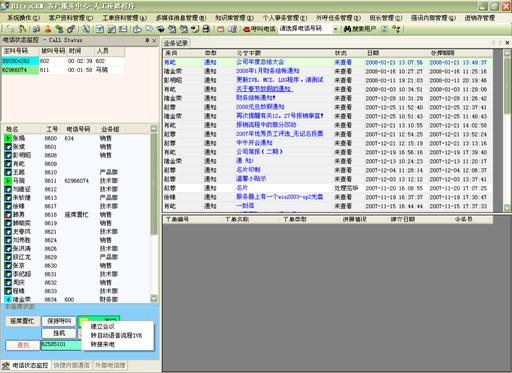 在個(gè)人事務(wù)管理中,坐席人員方便的設(shè)定工作計(jì)劃安排,查詢呼叫記錄(呼入、呼出、呼入失。,收發(fā)個(gè)人Email、短信息、個(gè)人公文以及進(jìn)行公文流轉(zhuǎn)等。