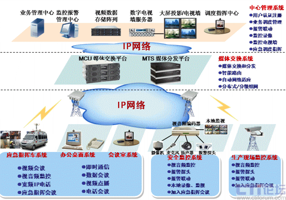 監(jiān)控和會議完美融合,監(jiān)控報警可以自動召集應急會議,并通過短信、電話、直接視頻方式召集預定義的相關(guān)部門人員進入會議,監(jiān)控圖像可以作為會議的視頻源供與會者察看;不僅滿足日常監(jiān)控的應用,還可在緊急情況時進入指揮狀態(tài),為應急指揮決策提供平臺,同時與視頻會議功能有機融合,是管理者與被監(jiān)測點實時交流的工具。