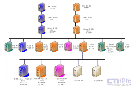 系統(tǒng)平臺(tái)采用集群化部署,實(shí)現(xiàn)跨網(wǎng)絡(luò)分布式,從而在應(yīng)用中實(shí)現(xiàn)南北網(wǎng)通電信的互聯(lián)互通,以及專網(wǎng)用戶的無障礙接入,實(shí)現(xiàn)方式如下圖所示: