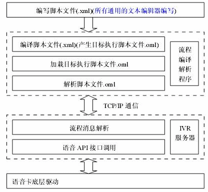 編譯編寫好的MyVXML流程腳本文件(*.xml),并能提供編譯時(shí)的出錯(cuò)信息,執(zhí)行目標(biāo)腳本文件(*.oml)的解析,提供流程調(diào)試信息:流程執(zhí)行跟蹤日志、變量跟蹤日志、通信消息跟蹤日志、便于分析流程執(zhí)行情況。