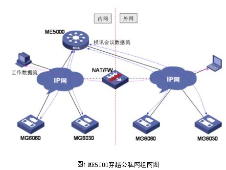ME5000 提供4個以太網(wǎng)口,其中3個網(wǎng)口可以用來召開視訊會議,這3個網(wǎng)口可以跨越在不同的網(wǎng)段上,實(shí)現(xiàn)公、私網(wǎng)的穿越,同時(shí)也可以為用戶提供網(wǎng)絡(luò)負(fù)載均衡的功能。在存在防火墻的環(huán)境中,可以把ME5000的兩個網(wǎng)口分別布置在防火墻的兩側(cè),連接內(nèi)、外網(wǎng)的視訊終端,從而可以直接繞過防火墻進(jìn)行開會,而不影響其它數(shù)據(jù)業(yè)務(wù)的安全,內(nèi)、外網(wǎng)進(jìn)出數(shù)據(jù)業(yè)務(wù)時(shí)仍然會通過防火墻,網(wǎng)絡(luò)安全保護(hù)作用不受影響。