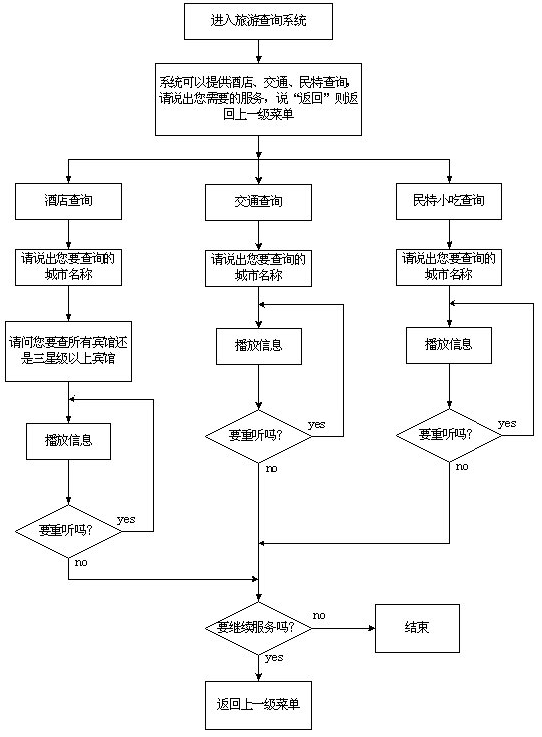 該系統(tǒng)主要采用語(yǔ)音技術(shù)實(shí)現(xiàn)航班信息查詢,系統(tǒng)的主業(yè)務(wù)流程如圖一至五示。