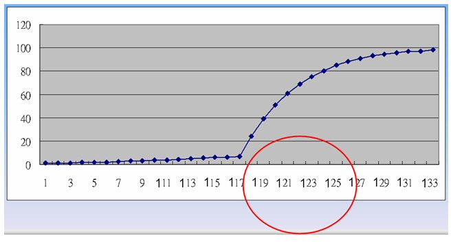 這個(gè)呼叫中心從一只貓沒有,一直增加到117人之前,服務(wù)水平幾乎連一動(dòng)也不動(dòng),但只要人數(shù)增加到118人以后,服務(wù)水平突然猛烈上升,一直到128人才緩慢下來(lái),這時(shí)服務(wù)水平已經(jīng)上升到93,后面的變化就跟117人之前很像,不管再增加多少人,服務(wù)水平的增加都非常有限。
